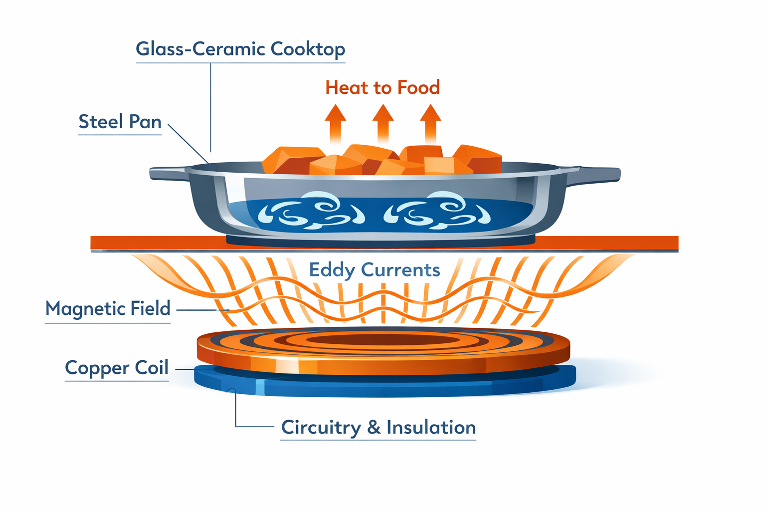 A clear, visual explanation of the science behind induction cooking — electromagnetic heating, efficiency gains, and why your cookware matters.