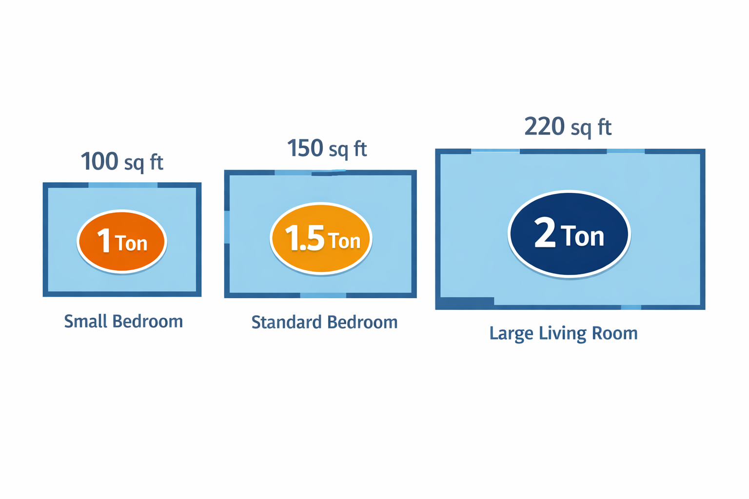| 120–150 | 1.0–1.5 Ton | Standard bedroom |