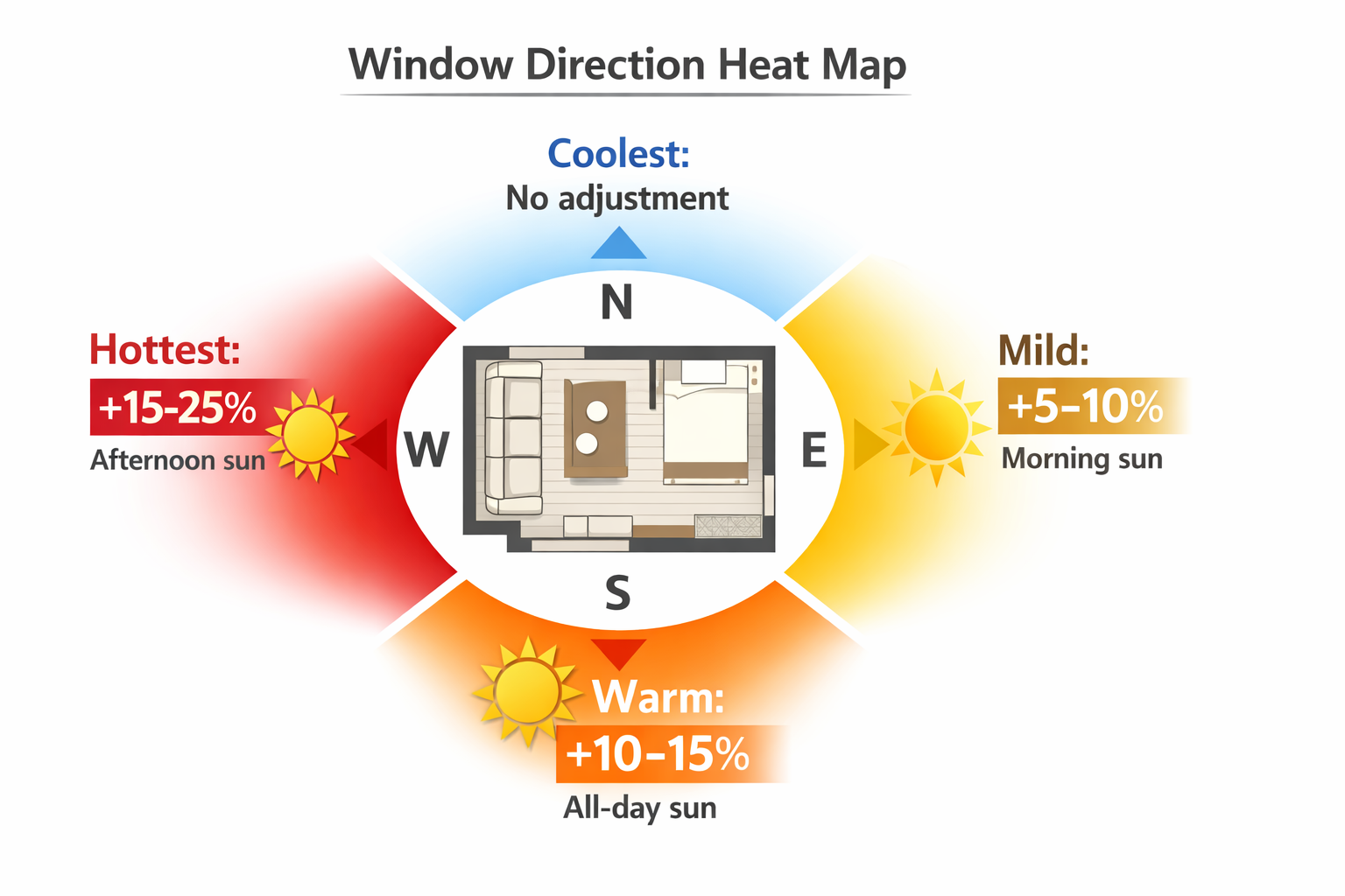 | Window Direction | Heat Impact | Adjustment |