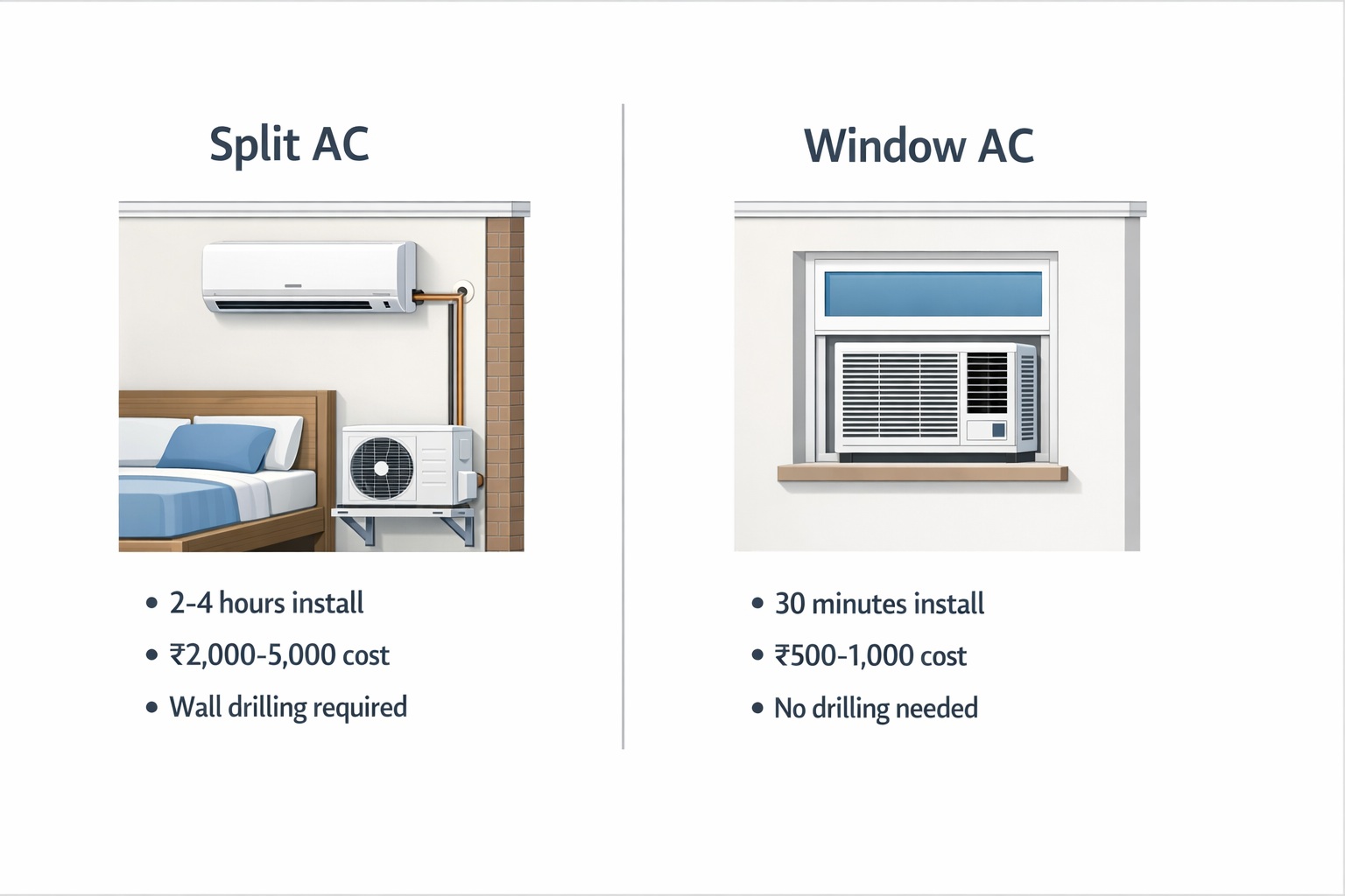 Not factoring in relocation costs for renters — If you move every 2 years, you'll spend ₹4,000–8,000 on split AC uninstallation and reinstallation each time. Over 3 moves, that's ₹12,000–24,000 — enough to have bought a decent window AC instead.
